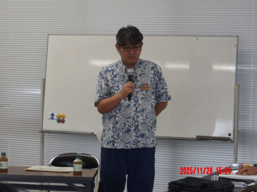 令和7年度八重山地域研修会(写真) 2025年12月8日 日付:令和7年11月26日~27日 場所:沖縄県建設業協会八重山支部 八重山保健所 生活環境班 八重山保健所 生活環境班 主任 名幸 由里香 主任 上原 克大 沖縄総合事務局 石垣島農業水利事業所 一般社団法人 沖縄県農林水産土木建設会 工事課長 奥田 法行 専務理事兼事務局長 玉城 貢 沖縄県八重山家畜保健衛生所 八重山労働基準監督署 支援主幹 仲村 圭子 監督・安衛課長 神谷 武知 リモート参加 対面参加